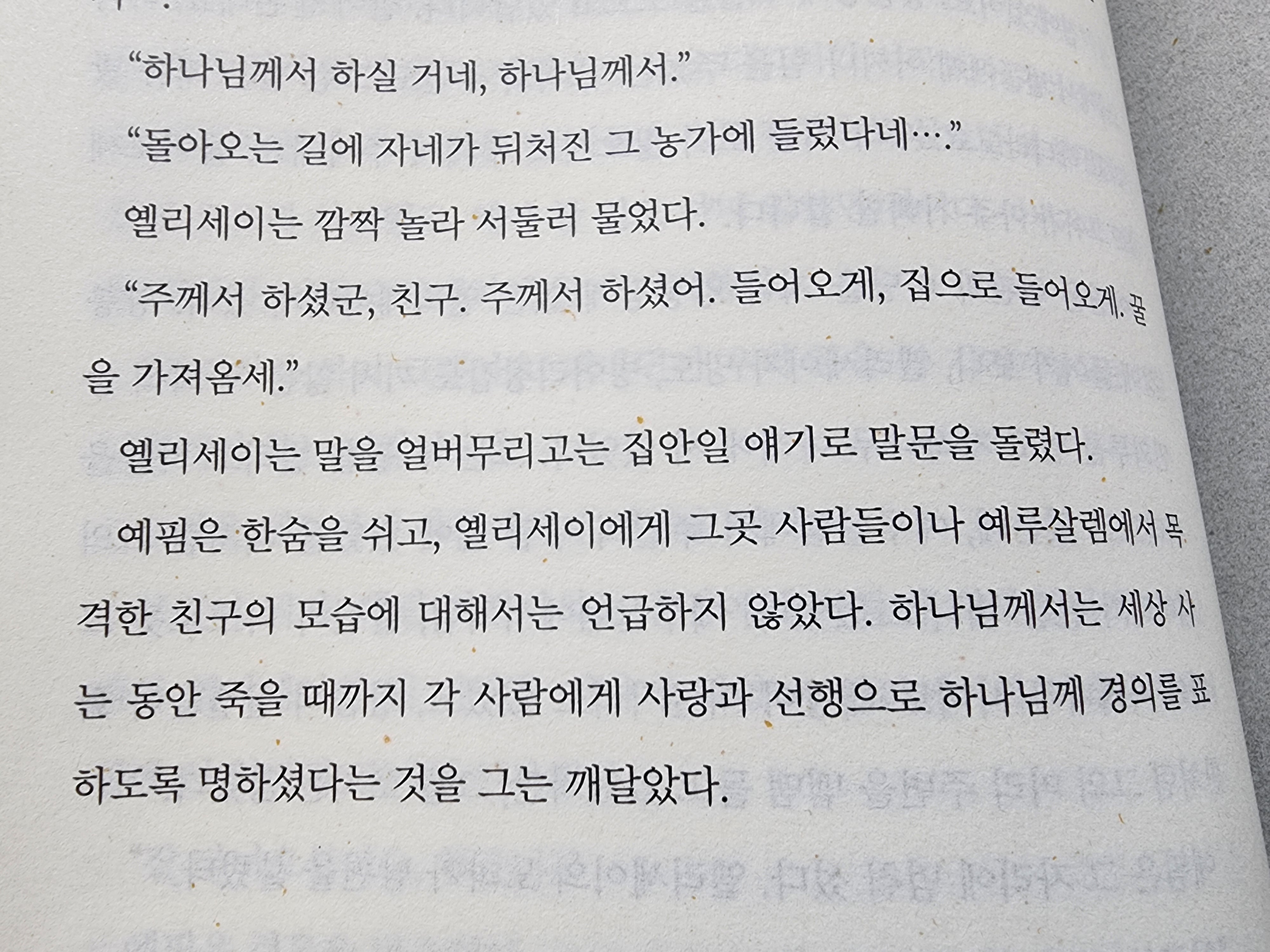 수도원의 노인이 복음서를 읽어 보라고 한다.